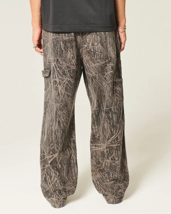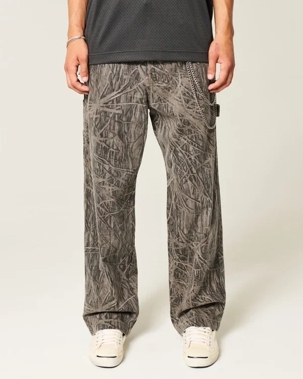 Comfortable denim jeans designed with a baggy leg, left painter loop and extra pockets. All-over camo pattern.