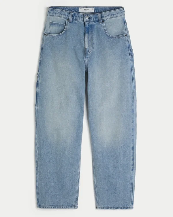 Light Wash Embroidered Back Pocket Skater Baggy Painter Jeans