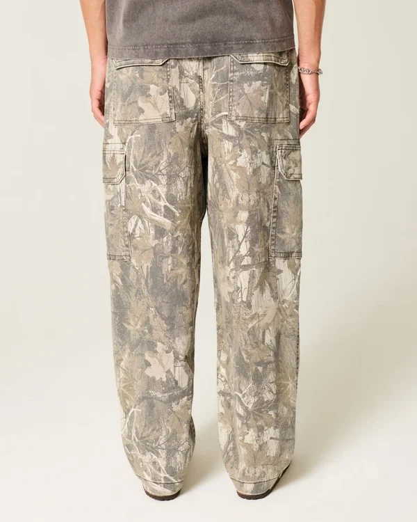 Super comfortable and skater-inspired, these baggy pants feature an all-over camo pattern and side cargo pockets. Twill fabric.
