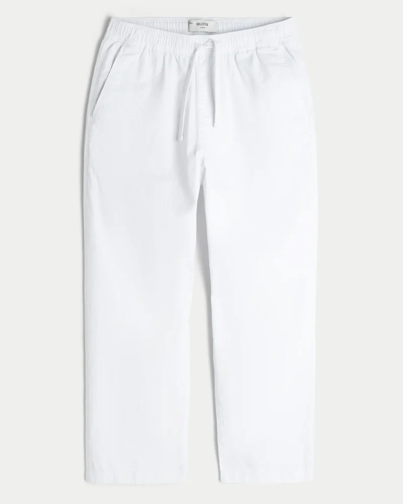 Comfortable pants in soft linen blend, designed with a loose leg and pull-on drawstring waist. Pockets.