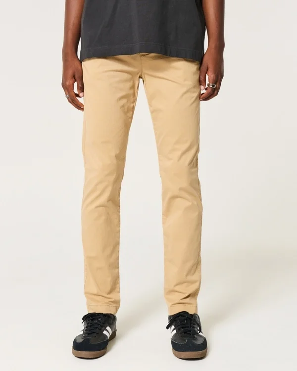 Ultra-comfortable twill chino pants with stretch, designed with a slim leg from top to bottom. Pockets.
