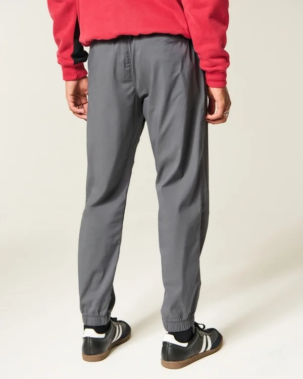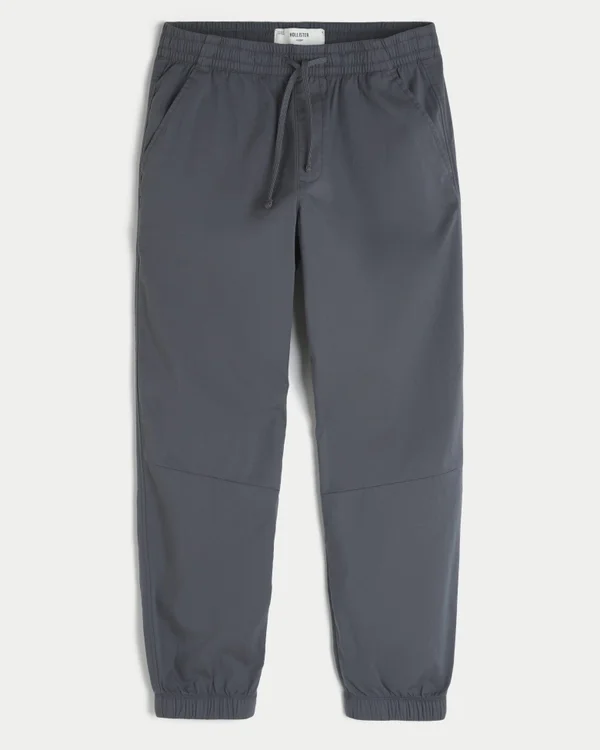 Comfortable joggers in athletic fabric with a drawstring waist, banded hems and pockets.