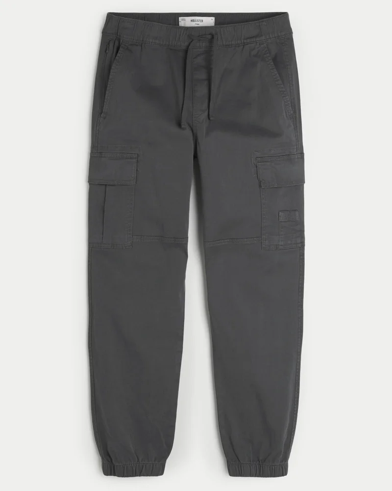 Comfortable joggers designed with a relaxed leg and side cargo pockets. Drawstring waist, banded cuffs, pockets, right zipper pocket.