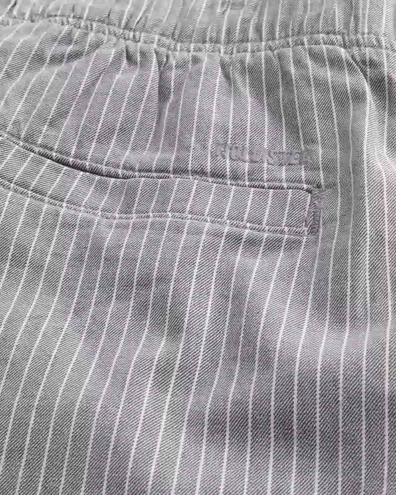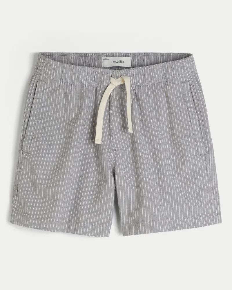 Comfortable shorts in a soft linen blend, designed with a pull-on drawstring waist and mid-thigh length. Striped pattern, pockets, embroidered logo detail at back.
