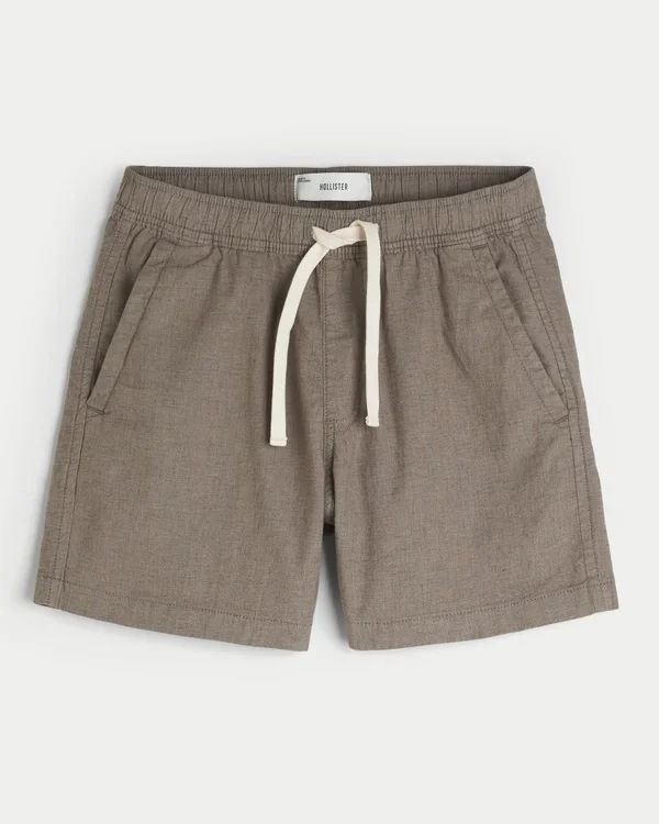Comfortable shorts in a soft linen blend, designed with a pull-on drawstring waist and mid-thigh length. Pockets.