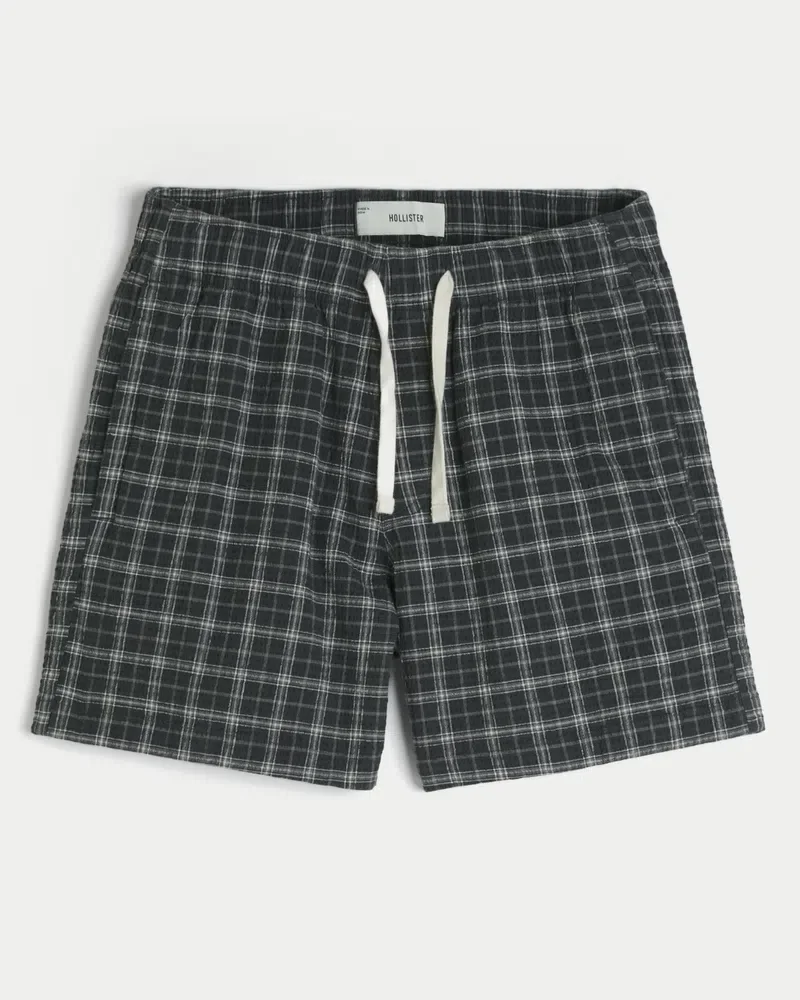 Comfortable shorts in soft seersucker fabric, designed with a pull-on drawstring waist and mid-thigh length. Pockets.