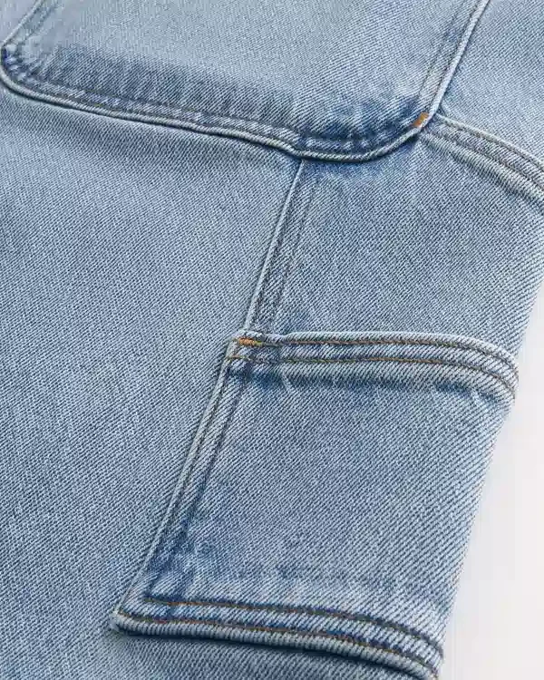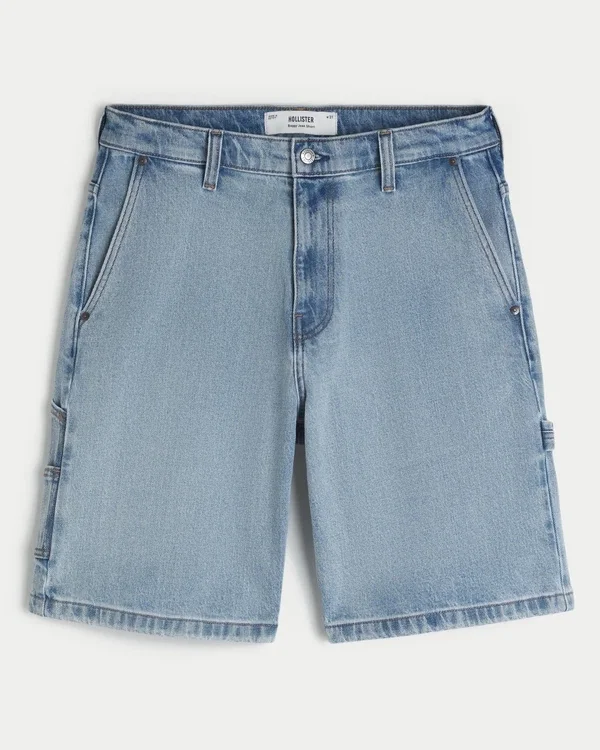 Comfortable denim painter shorts designed with a baggy leg. Left loop detail, extra pockets.
