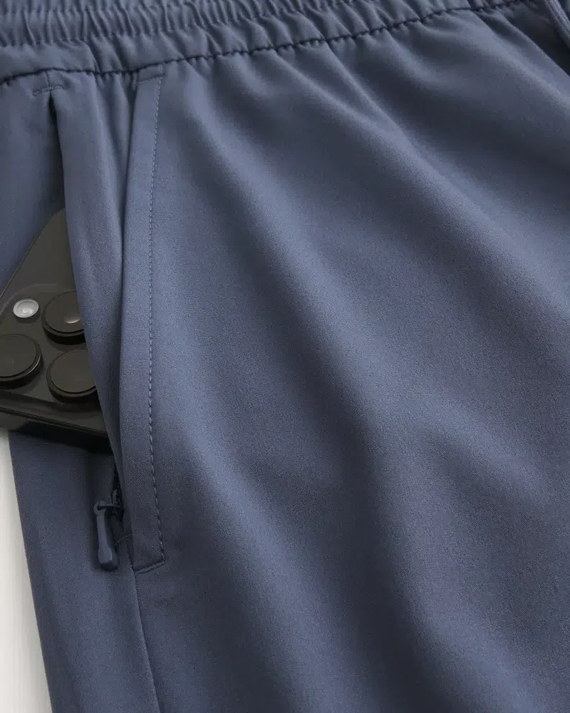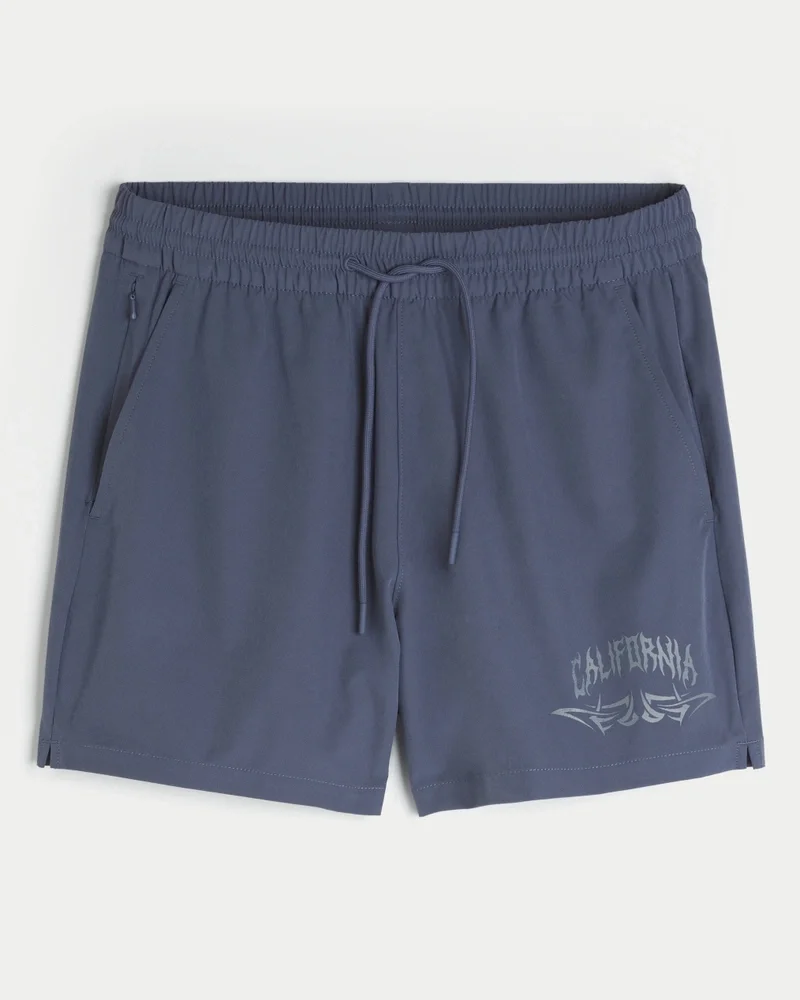 Comfortable active shorts with stretch, designed with a mid-thigh length and drawstring waist. Graphics, right zipper pocket, pockets.