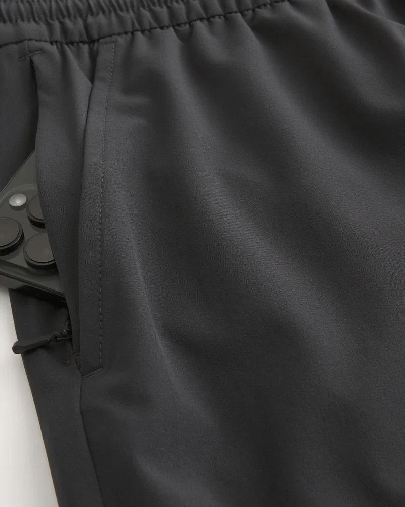 Comfortable active shorts with stretch, designed with a mid-thigh length and drawstring waist. Graphics, right zipper pocket, pockets.