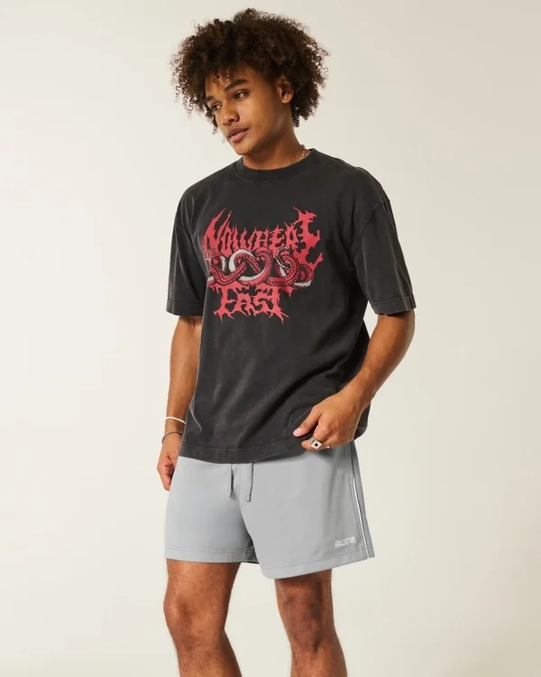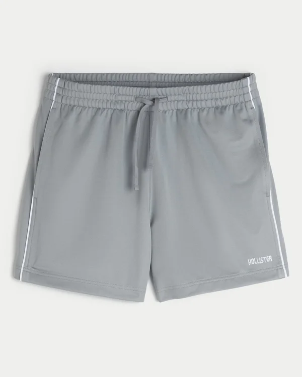 Super soft knit soccer shorts with a drawstring waist and embroidered logo detail at the left hem. Pockets, mid-thigh length.