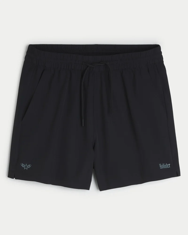 Comfortable active shorts with stretch, designed with a mid-thigh length and drawstring waist. Logo detail, pockets.