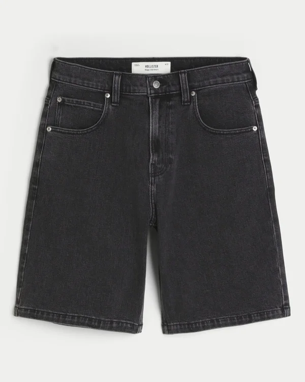 Comfortable denim jean shorts in washed black, designed with a baggy leg.