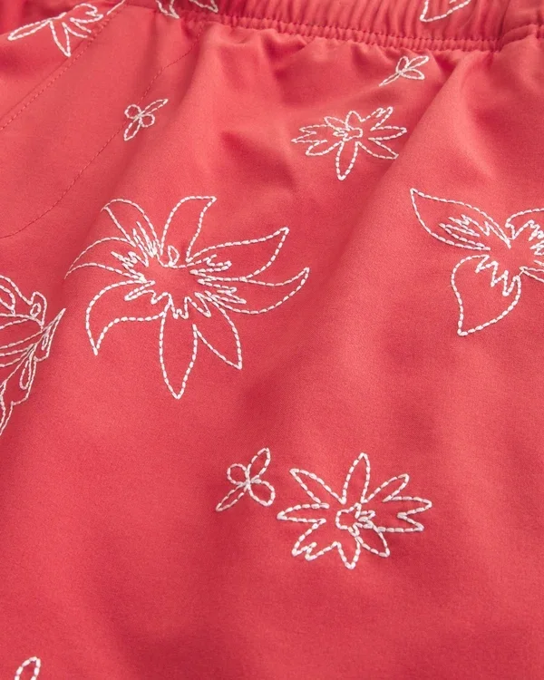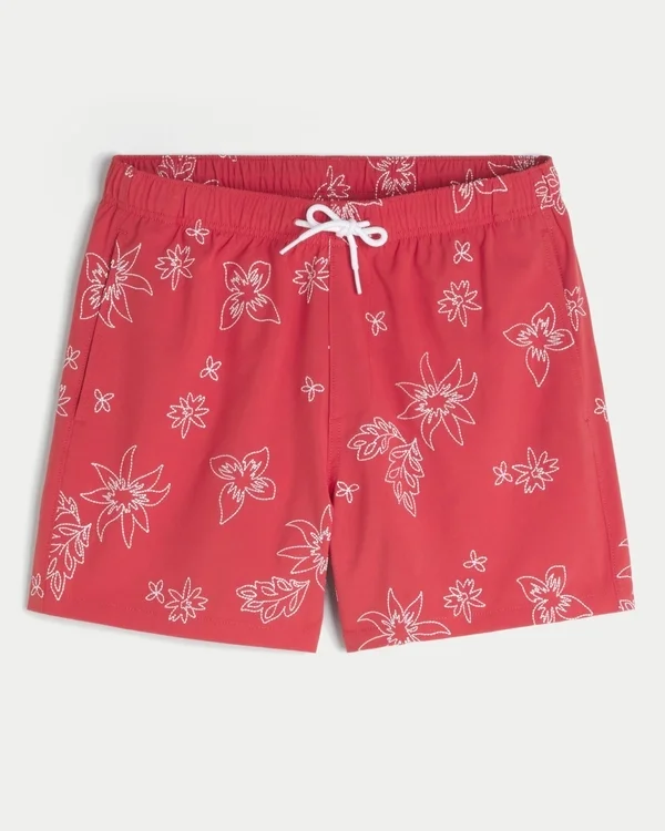 Shorter-length swim trunks that hit mid-thigh. Featuring comfortable 4-way stretch swim fabric and a 5.5" inseam. Pockets, embroidered floral graphics.