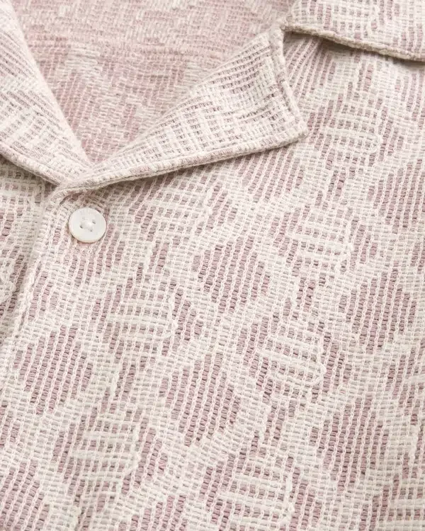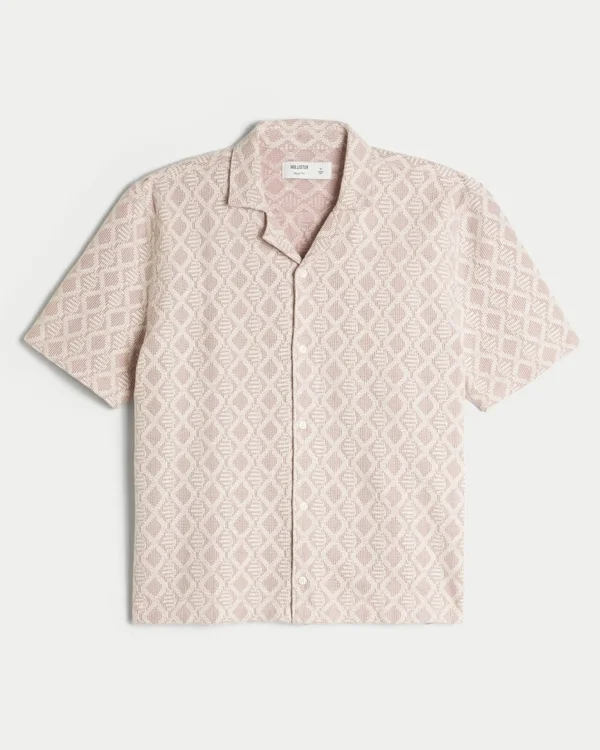 Made with soft crochet-style fabric, this classic button-through shirt features an all-over diamond pattern and short sleeves. Button closure, collar. Boxy Fit.