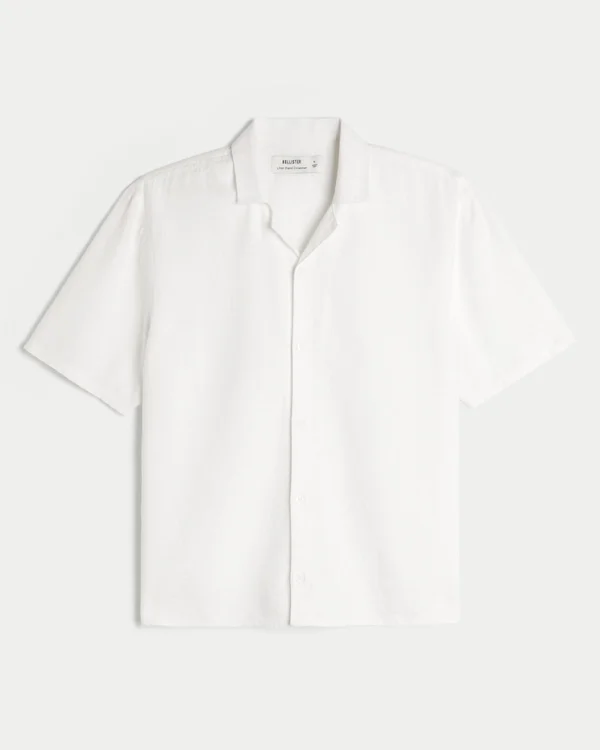 This classic button-through shirt is made with a soft linen blend. Collar, short sleeves.