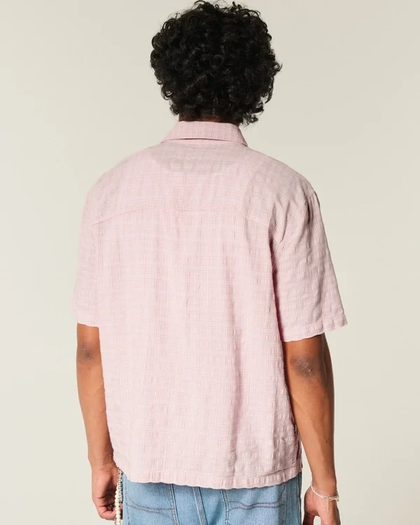 This classic short-sleeve shirt has a full button closure and left chest pocket. Short sleeves, collar. Boxy Fit.