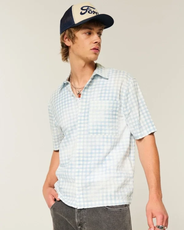 This classic short-sleeve shirt has a full button closure and left chest pocket. Short sleeves, collar. Boxy Fit.