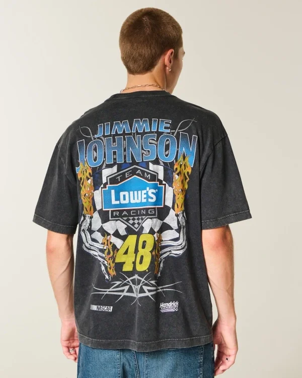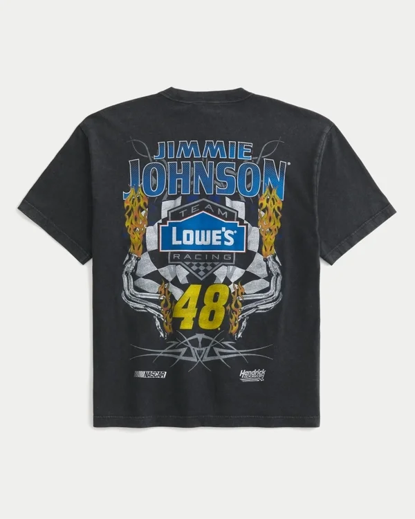 A super soft 100% cotton tee featuring official licensed Jimmie Johnson Team Lowe’s NASCAR graphic tee at the front and back. Crew neckline, short sleeves. Boxy Fit.