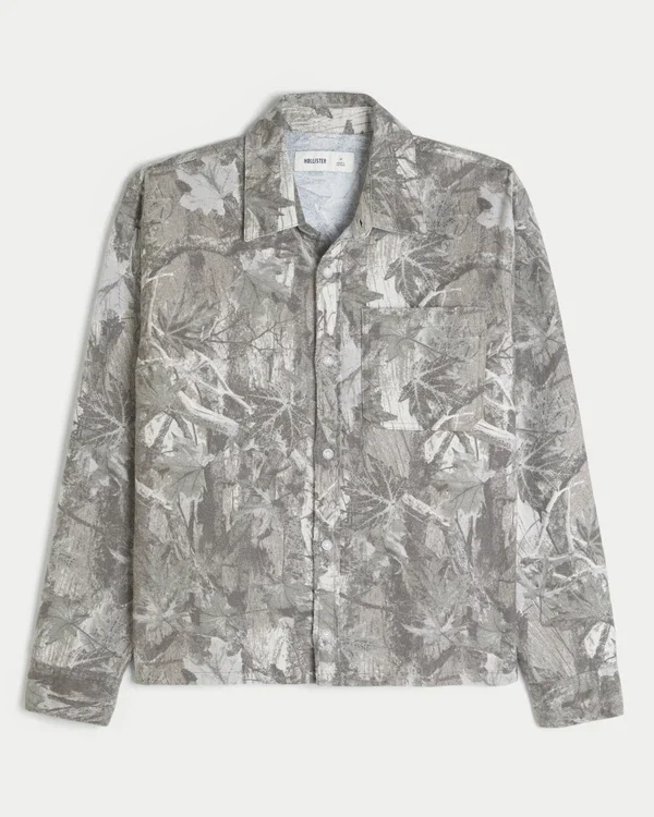 A classic shirt in soft cotton flannel fabric, featuring an all-over camo pattern. Full button closure, long sleeves, left chest pocket, collar. Boxy Fit.
