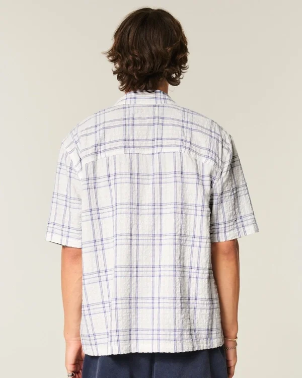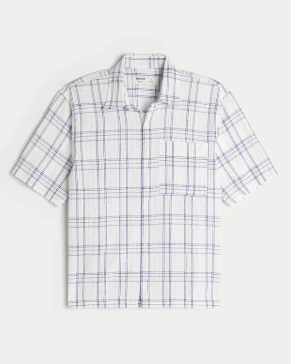 This classic short-sleeve shirt has a full button closure and left chest pocket. Short sleeves, collar. Boxy Fit.