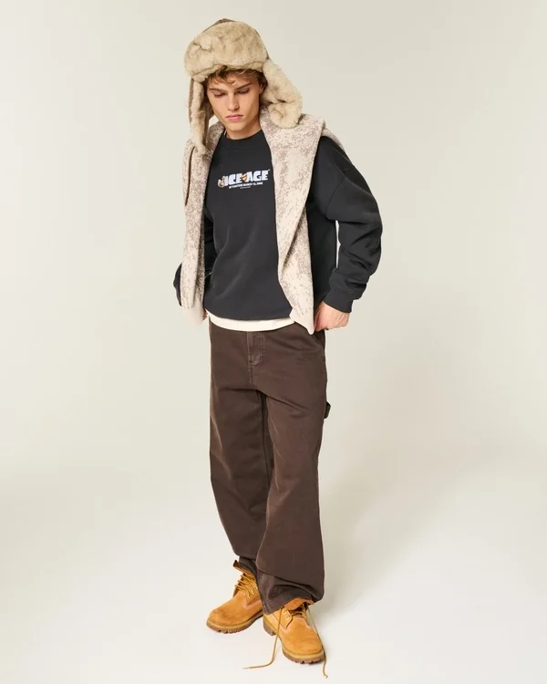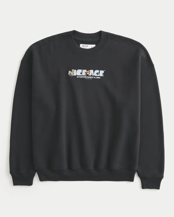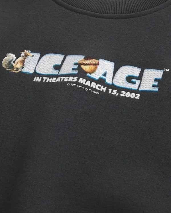A super soft fleece sweatshirt featuring official licensed Ice Age graphic embroidery. Crew neckline, long sleeves. Boxy Fit.