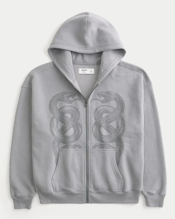 Boxy Zip-Up Double Snake Graphic Hoodie