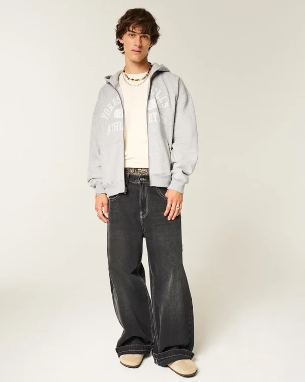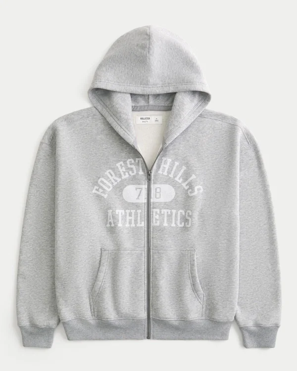 Boxy Zip-Up Forest Hills Athletics Graphic Hoodie