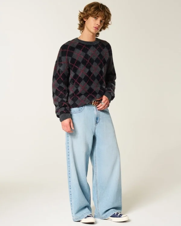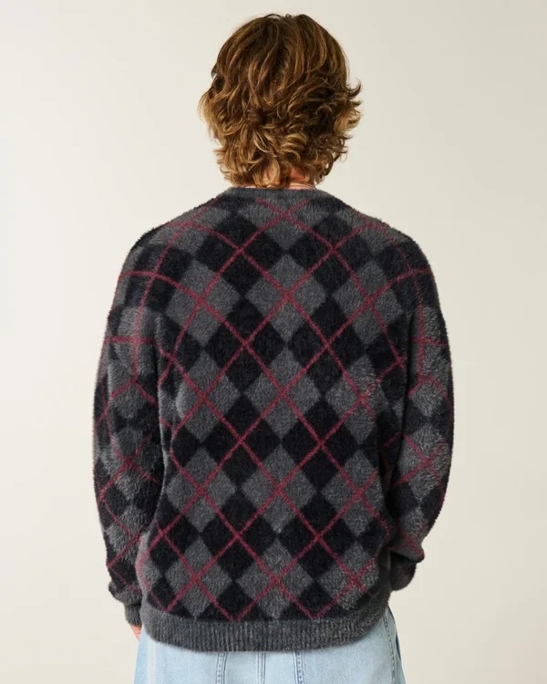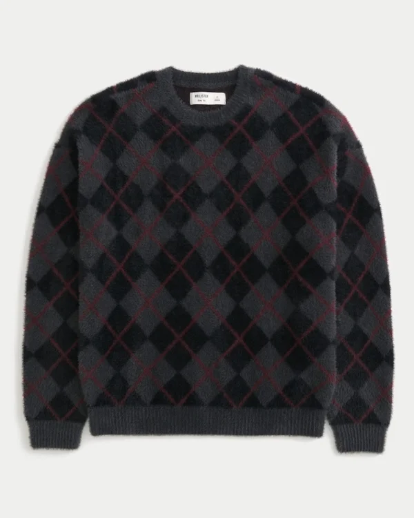 This super soft sweater features fuzzy knit texture. Crew neckline, long sleeves, ribbed trims. Boxy Fit.