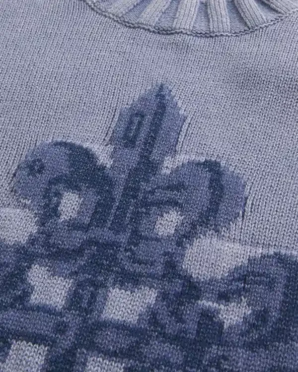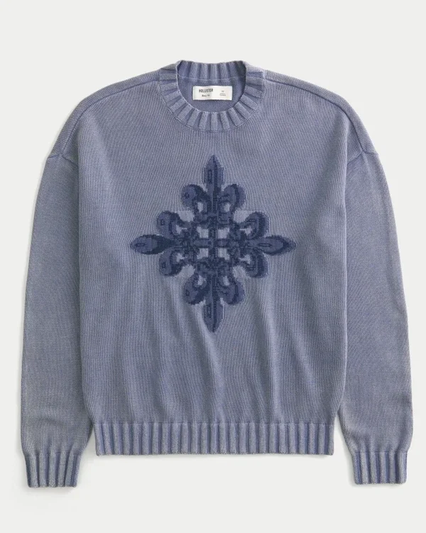 This super soft sweater features an intarsia graphic, crew neckline and ribbed trims. Crew neckline, long sleeves, washed look. Boxy Fit.