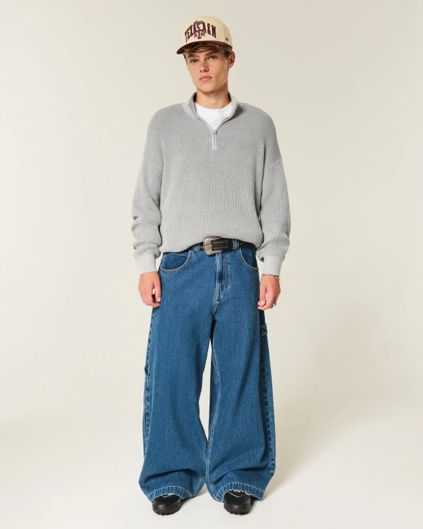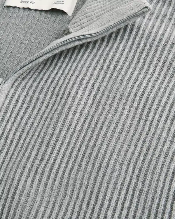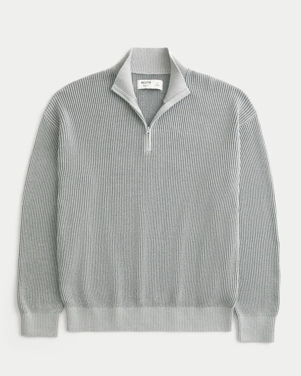 A super soft and comfortable knit sweater with a mock-neck collar and quarter-zip closure. Long sleeves. Boxy Fit.