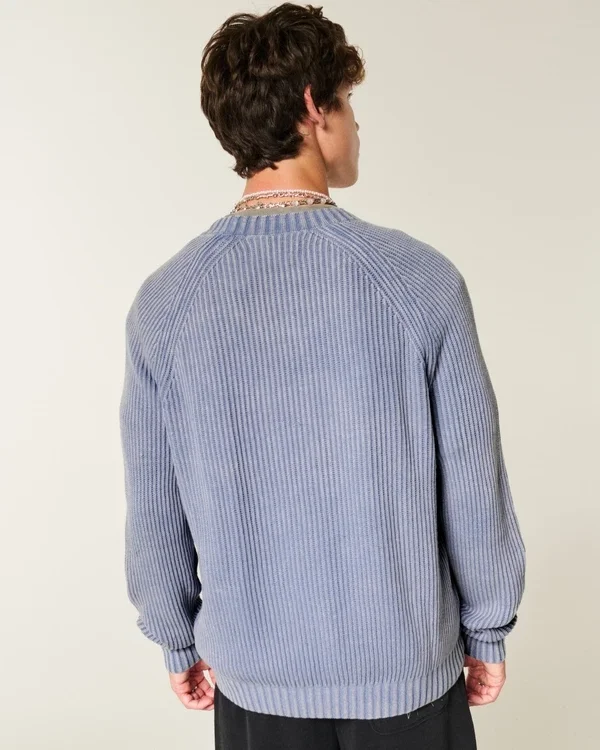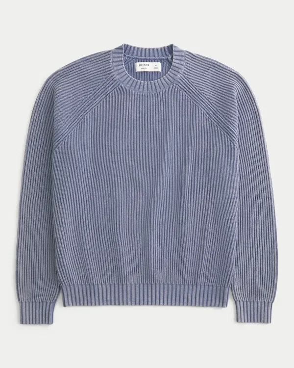 A super soft and comfortable knit sweater with ribbed texture and a washed look. Crew neckline, long sleeves, ribbed trims. Boxy Fit.