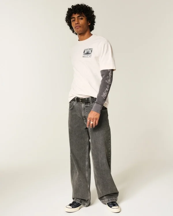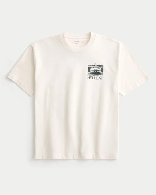 A super soft, heavyweight 100% cotton tee featuring official licensed Dodge Challenger SRT Hellcat print graphics at the left chest and back. Crew neckline, short sleeves. Boxy Fit