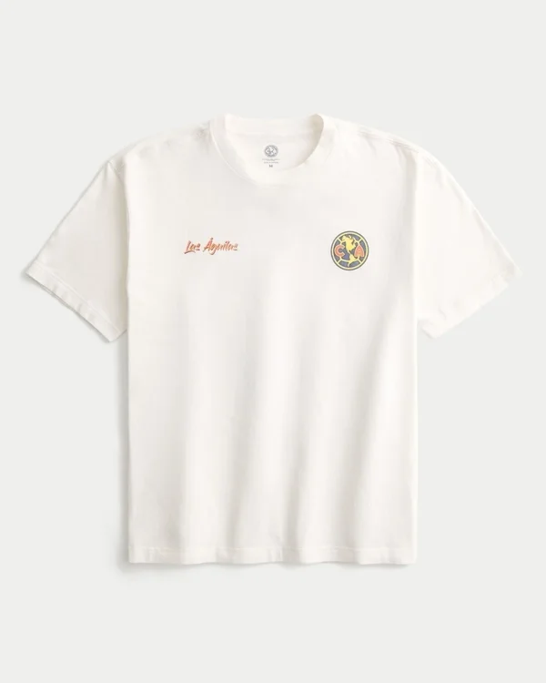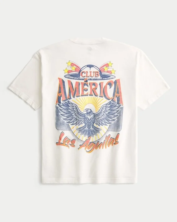 A super soft 100% cotton tee featuring official licensed Club America Las Águilas print graphics at the front and back. Crew neckline, short sleeves.