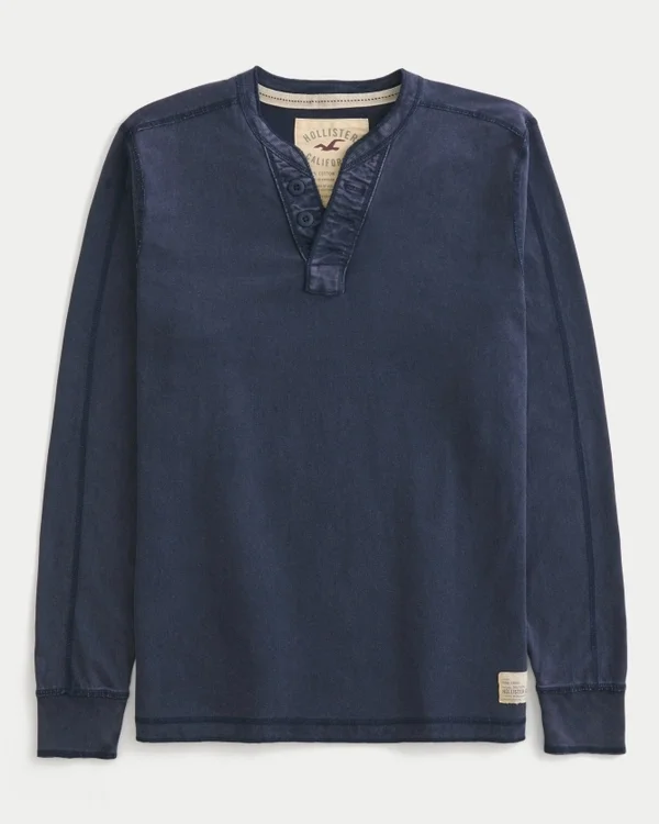 A classic henley with a crew neckline and button placket in 100% cotton. Long sleeves, logo detail.