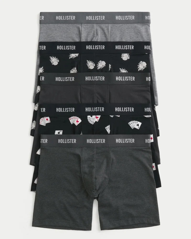 A 5-pack of our Longer-Length Boxer Briefs designed with comfortable, stretch knit fabric and contour pouch for support. Soft elastic waistband with logo details, 2 gambling-inspir