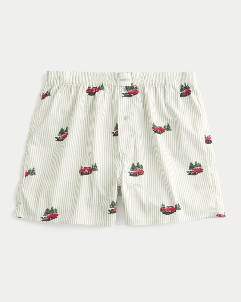 Woven boxer short in 100% cotton with a banded waist. Button fly.