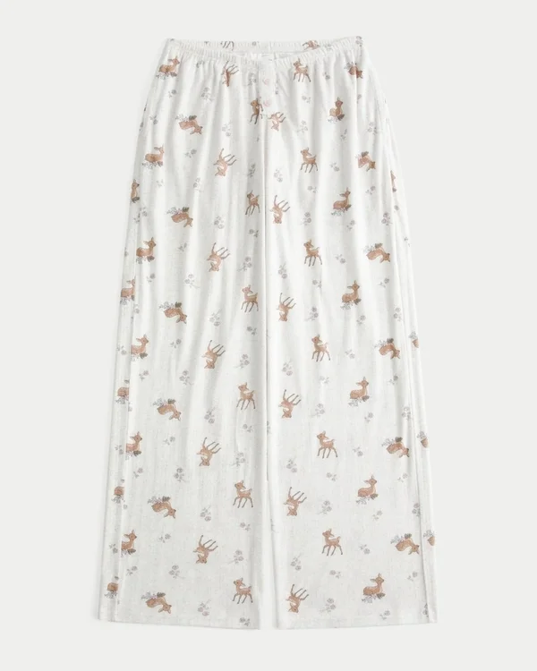 Cozy and super soft pants in pointelle fabric with a banded waist and wide-leg silhouette. Boxer-style heart-shaped buttons.