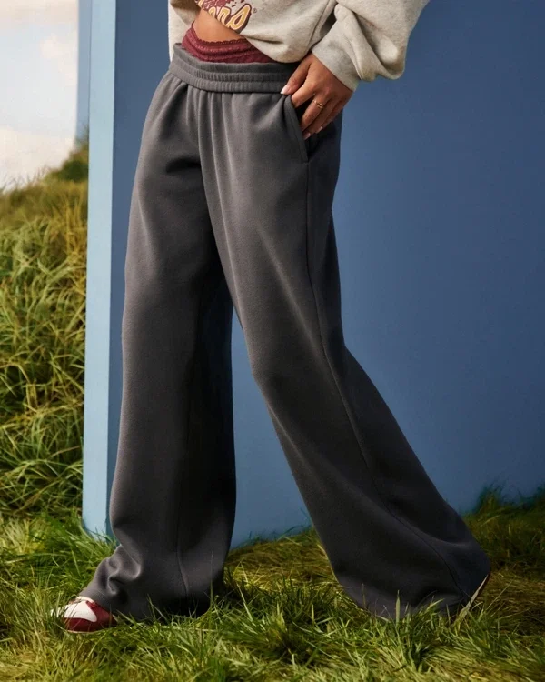 Super soft fleece sweatpants designed with a baggy leg and banded waist. Pockets.
