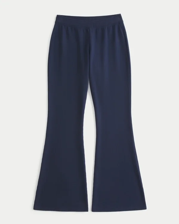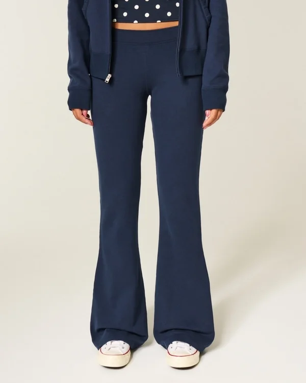 Cozy and super soft fleece sweatpants with a banded waist and flared hem. Mid-rise waist.