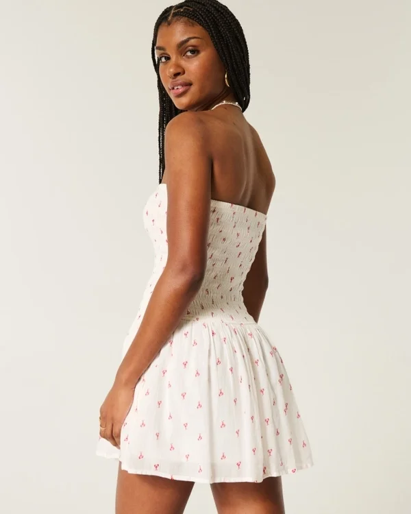A super cute and easy strapless mini dress with a comfortable smocked bodice. Built-in shorts, removable straps, pockets.
