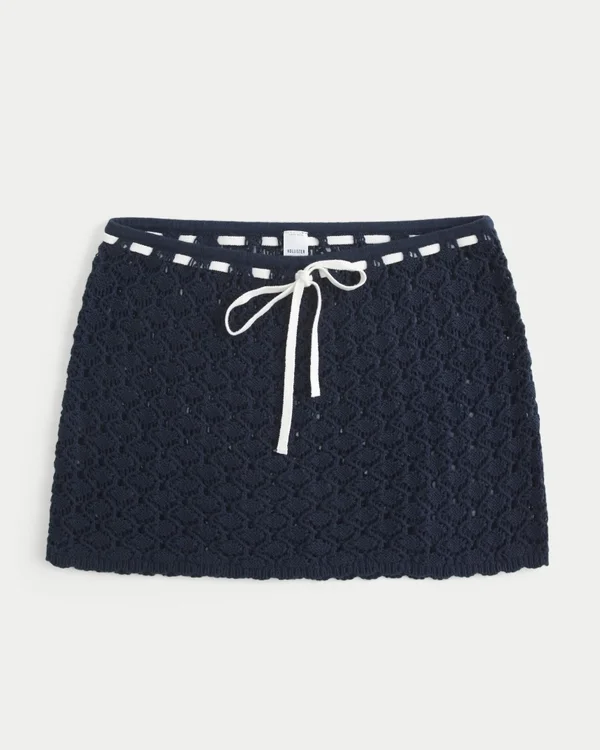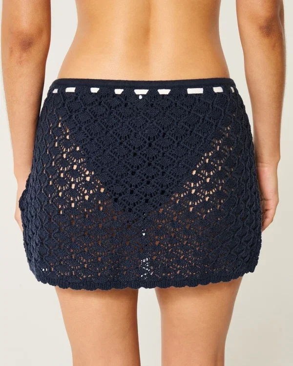 This cute and super soft swim cover up skirt is made with pretty crochet-style fabric. Pull-on drawstring waist.