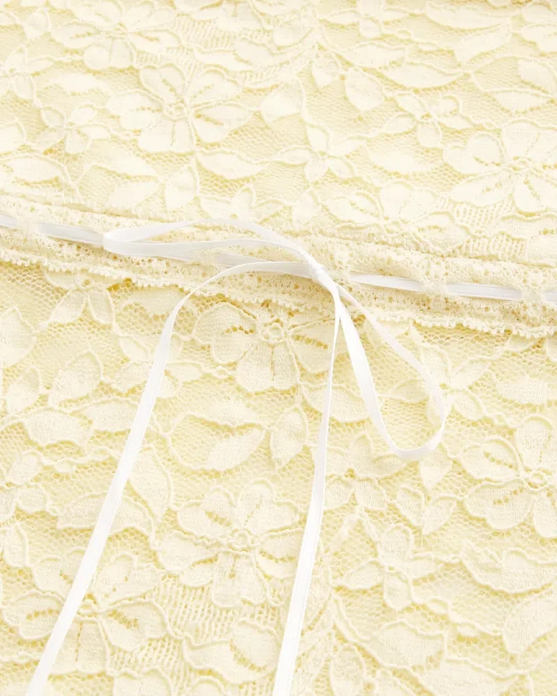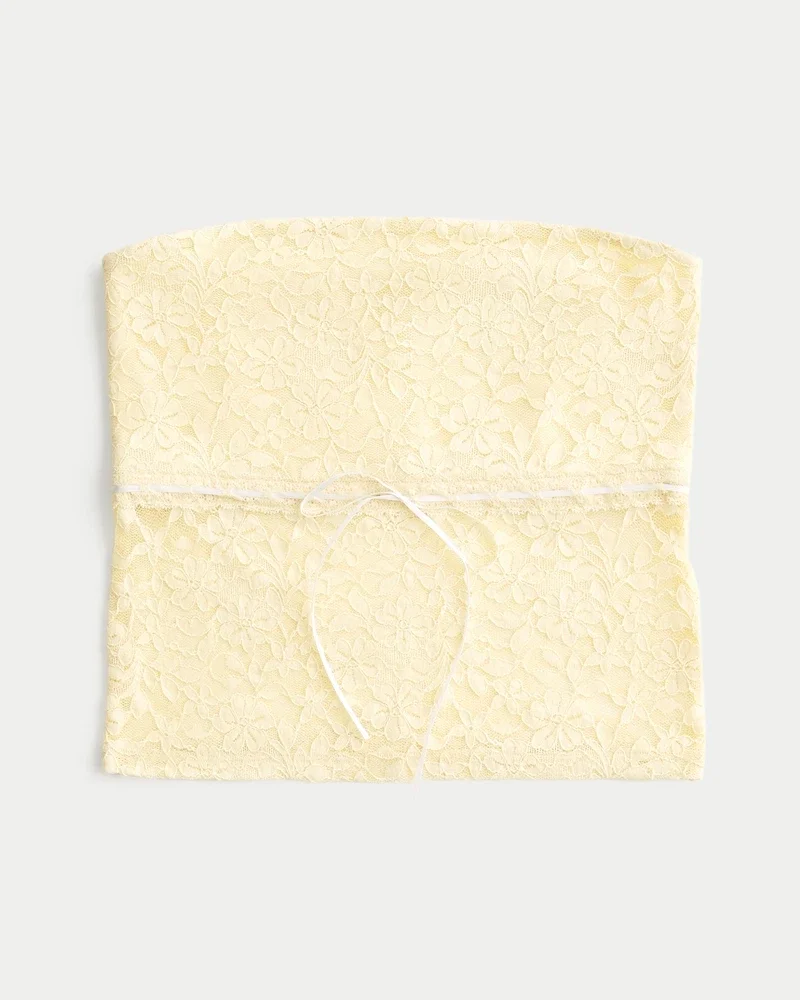This comfy tube top features all-over lace patterns and a pretty under-bust tie detail. Strapless, double-lined at bust.