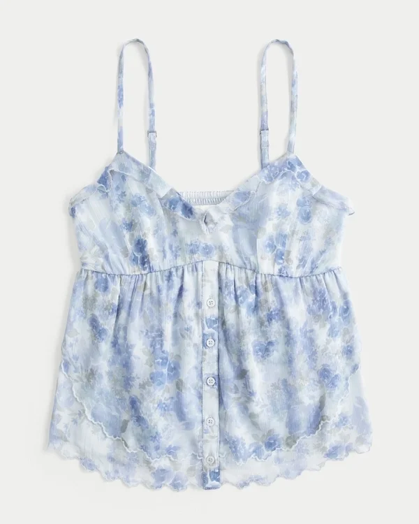 Made with super soft, flowy crinkle chiffon fabric, this babydoll top features ruffles and a tiered hem with embroidery. Button details, soft smocked back. Looks amazing dressed up