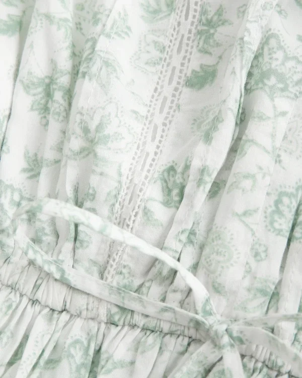This super soft tube top is perfect for warm, sunny weather! Made with voile fabric, strapless silhouette with ties at the neckline and waist, pretty lace insets, ruffle trims. Eas