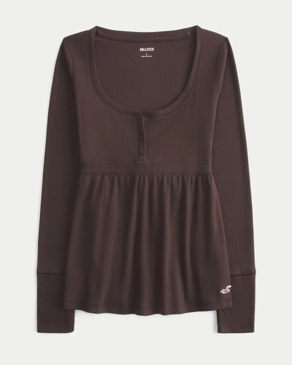 Cute and super soft, this babydoll top features a henley-style button placket and back tie. Long sleeves. Easy Fit.