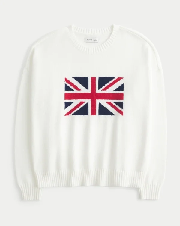 Cozy and super soft, this sweater features a Union Jack intarsia graphic, crew neckline and long sleeves. Ribbed trims. Easy Fit.