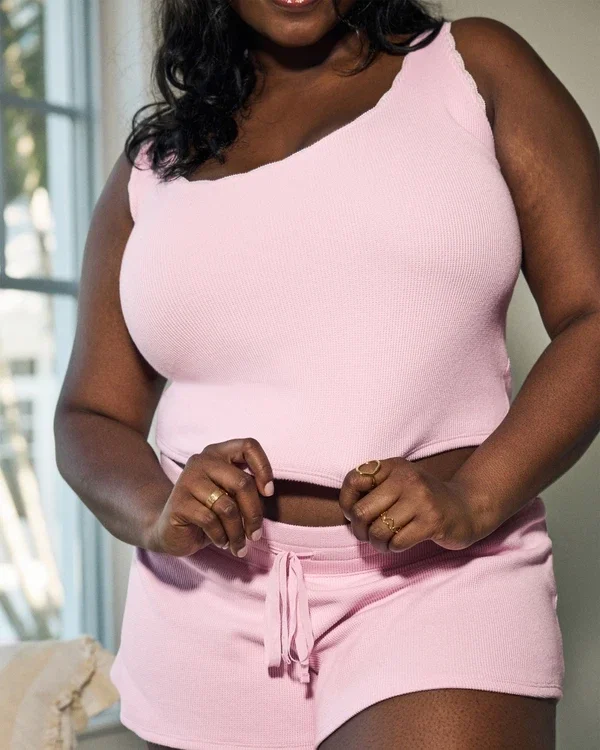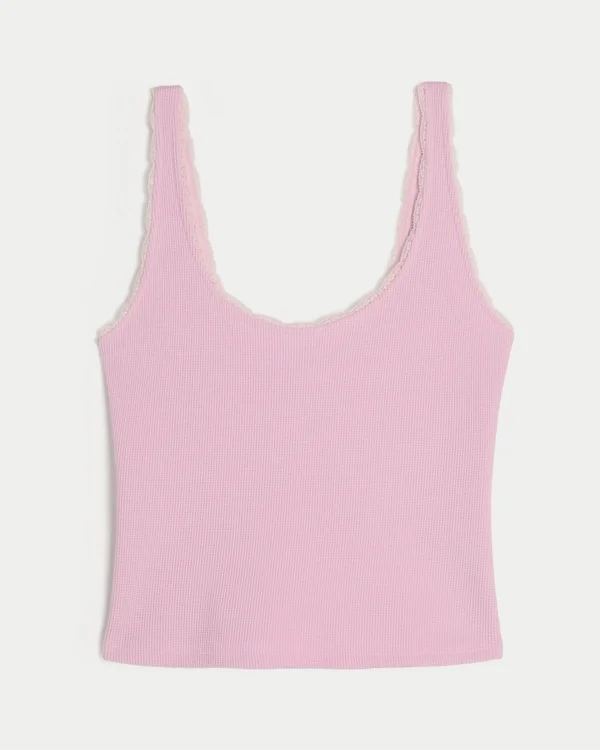 A cute and cozy tank in super soft waffle fabric, featuring pretty lace trim.