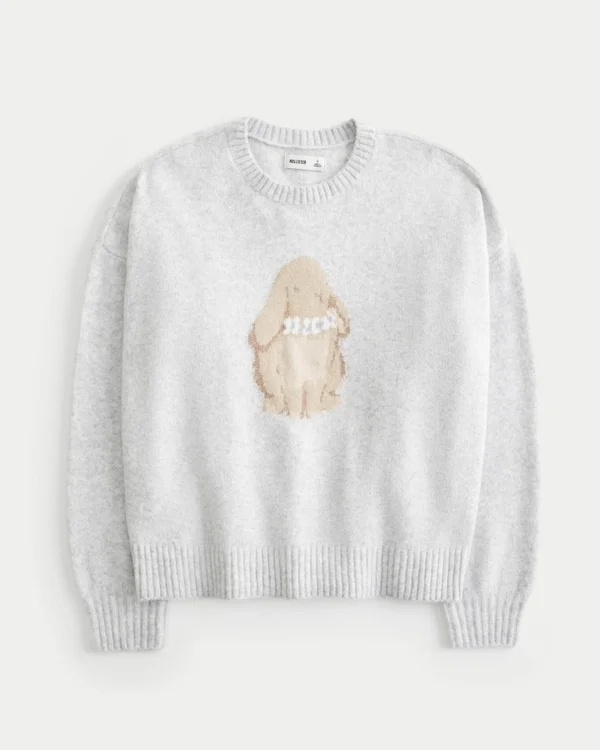 This super soft and cozy sweater features a cute bunny intarsia graphic, crew neckline and long sleeves. Ribbed trims.