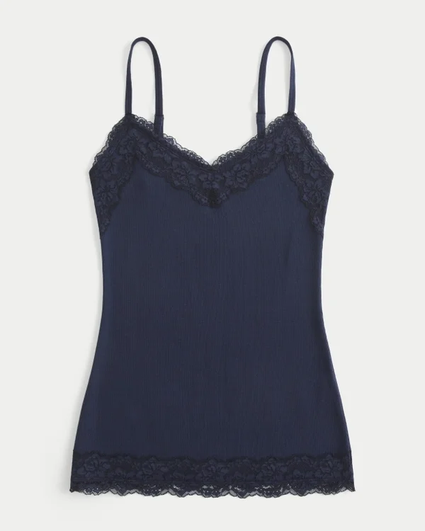 Pretty and super soft, this Y2K-inspired cami features lace trim at the neckline and hem. Adjustable straps. Slim Fit.