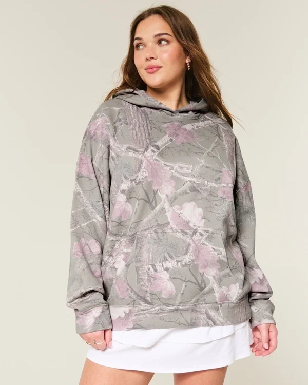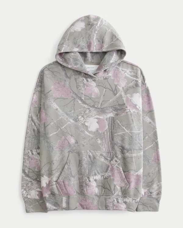 A super soft fleece hoodie with a front pouch pocket, hood and long sleeves. Pretty all-over floral pattern. Oversized Fit.